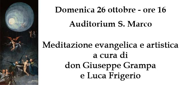 Domenica 26 Ottobre – ore 16 Auditorium San Marco Meditazioneevangelica e artisticaa cura didon Giuseppe Grampae Luca Frigerio Per dettagli, scaricare la locandina CLICCANDO QUI